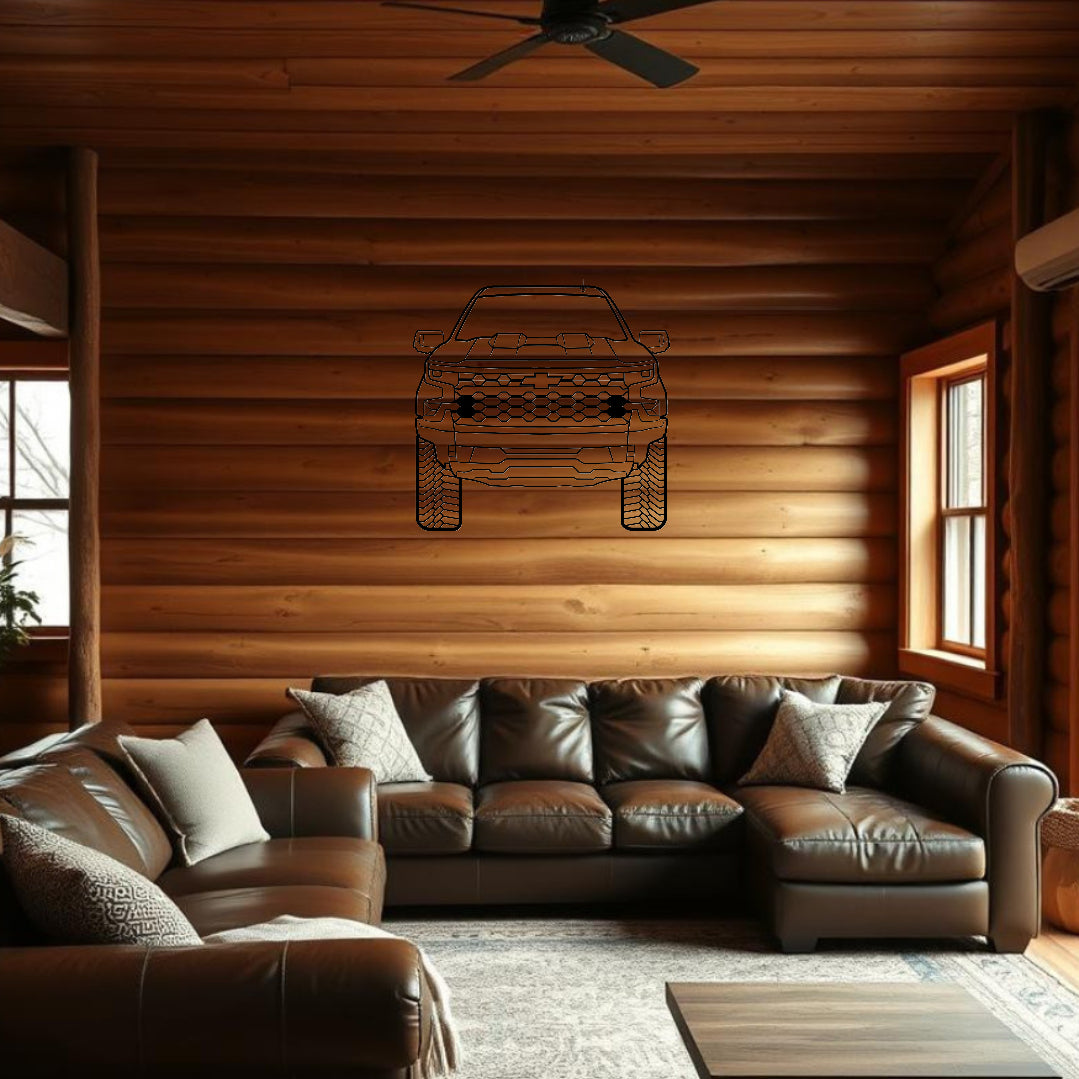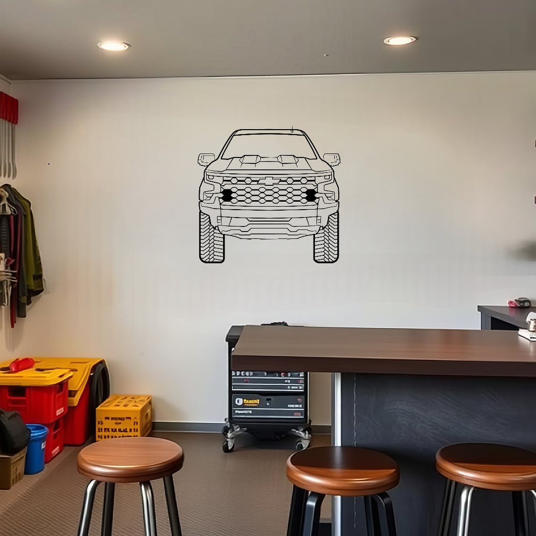 With its sharp lines, aggressive front end, and unmistakable stance, the 2023 Silverado 1500 is a modern icon and this wall art captures every bit of that bold energy. Laser-cut from 2mm steel and finished in matte black, it’s made to last and built to turn heads.