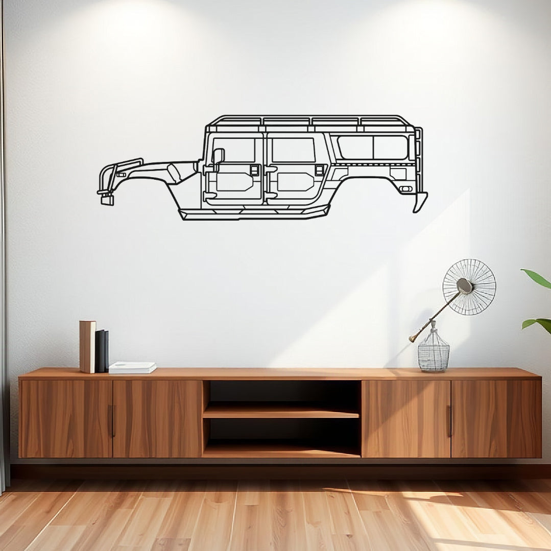 Laser-cut from thick 2mm steel and powder-coated in a matte finish, this piece captures the bold, wide stance and unmistakable lines of the original H1. From its rugged body to its no-compromise design, it’s a tribute to one of the most hardcore 4WDs ever made.